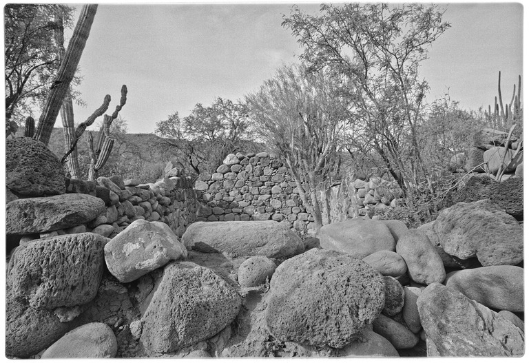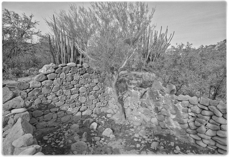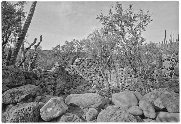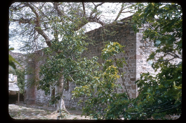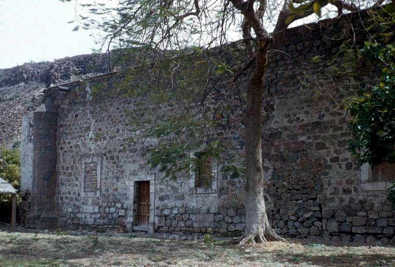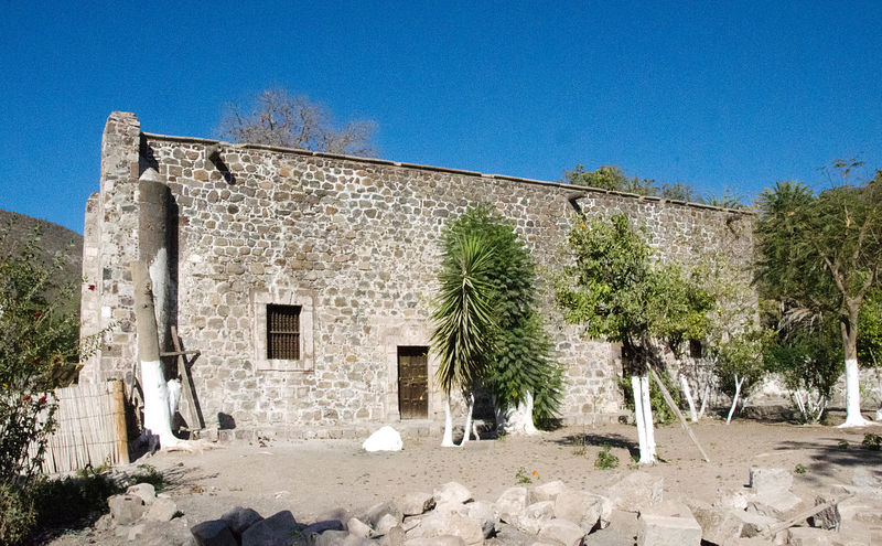 Mission San José de Comondú, founded in 1708 and relocated to this site in 1736 from Comondú Viejo, 22 miles to the north. Stone church buildings erected between 1751 and 1761. All but this side chapel were demolished in 1936.