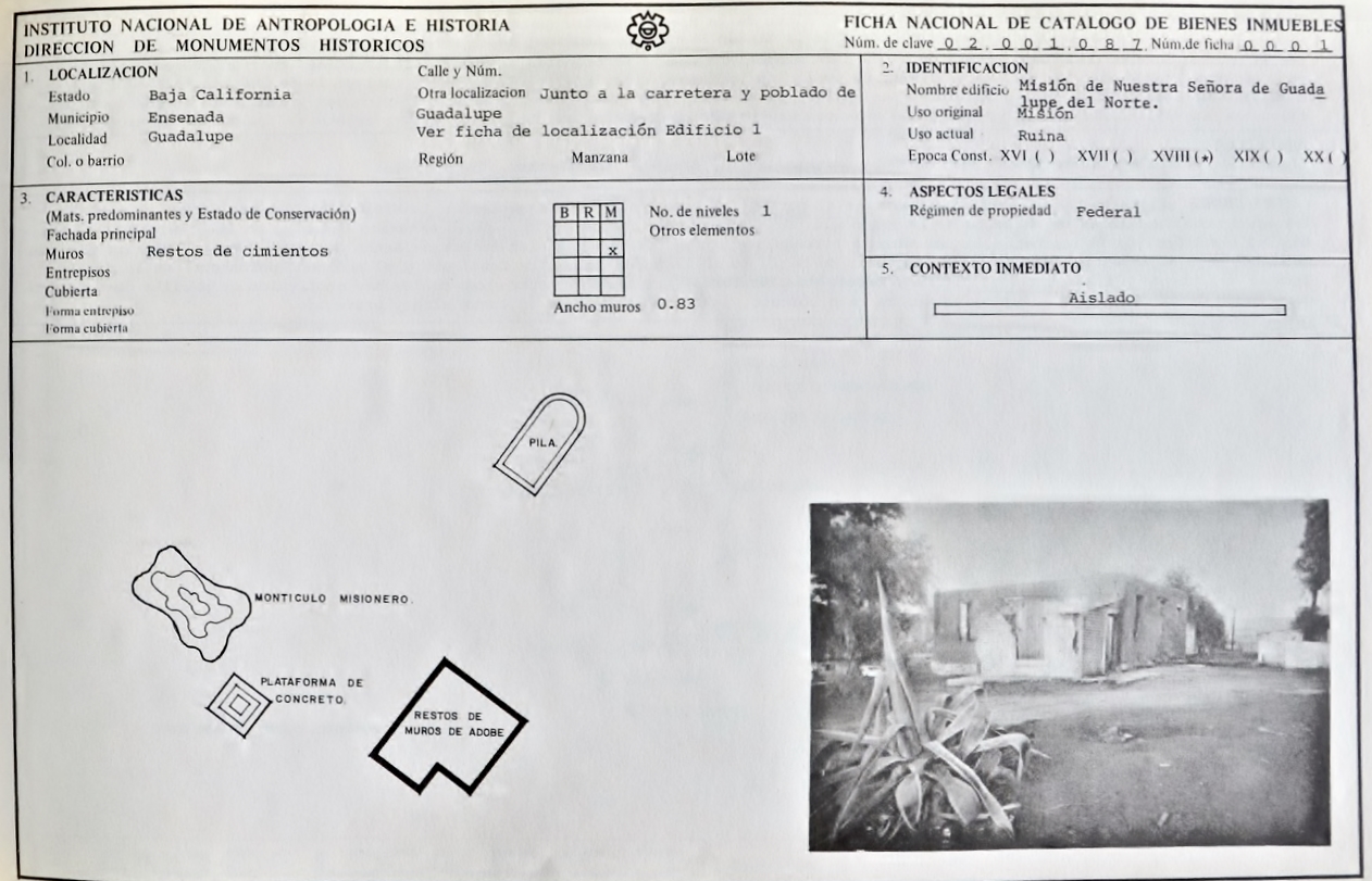 Access: Mex. #3, Km. 77. To find the mission, take the paved road going into town, at the gas station for Guadalupe (Francisco Zarco). Go 1 mile to a cross street. Ahead the road is divided, turn left to the mission museum, passing a school.