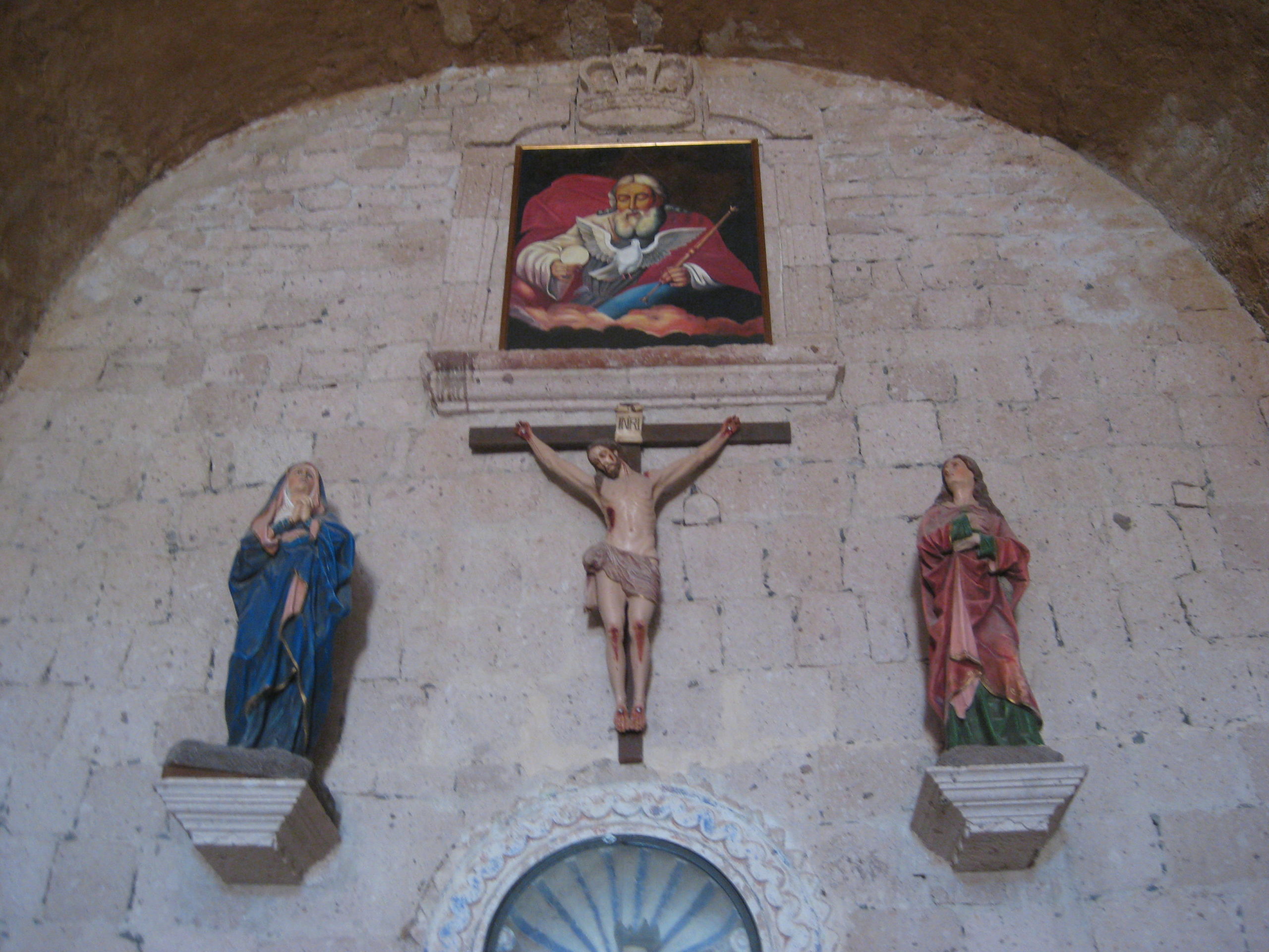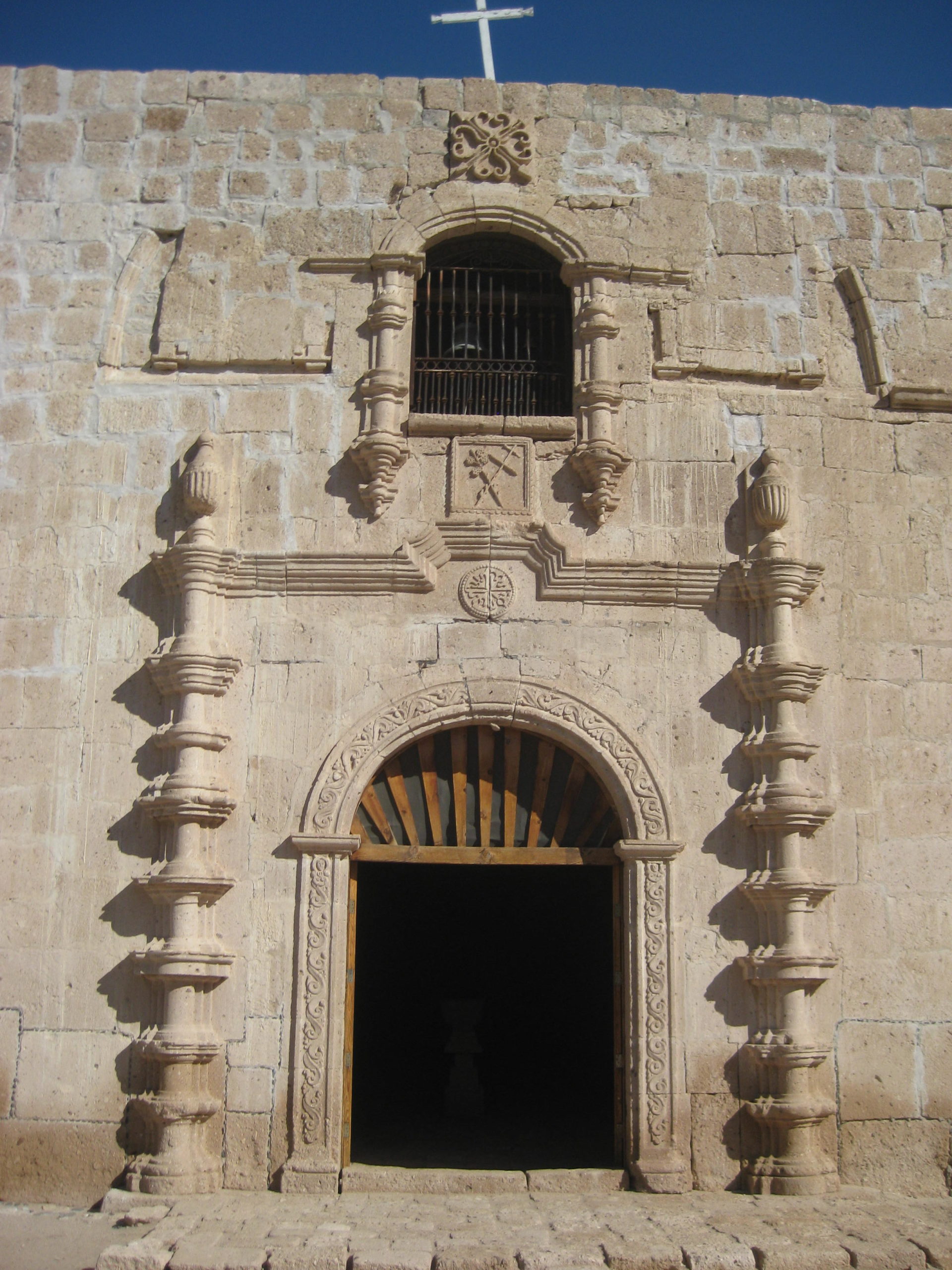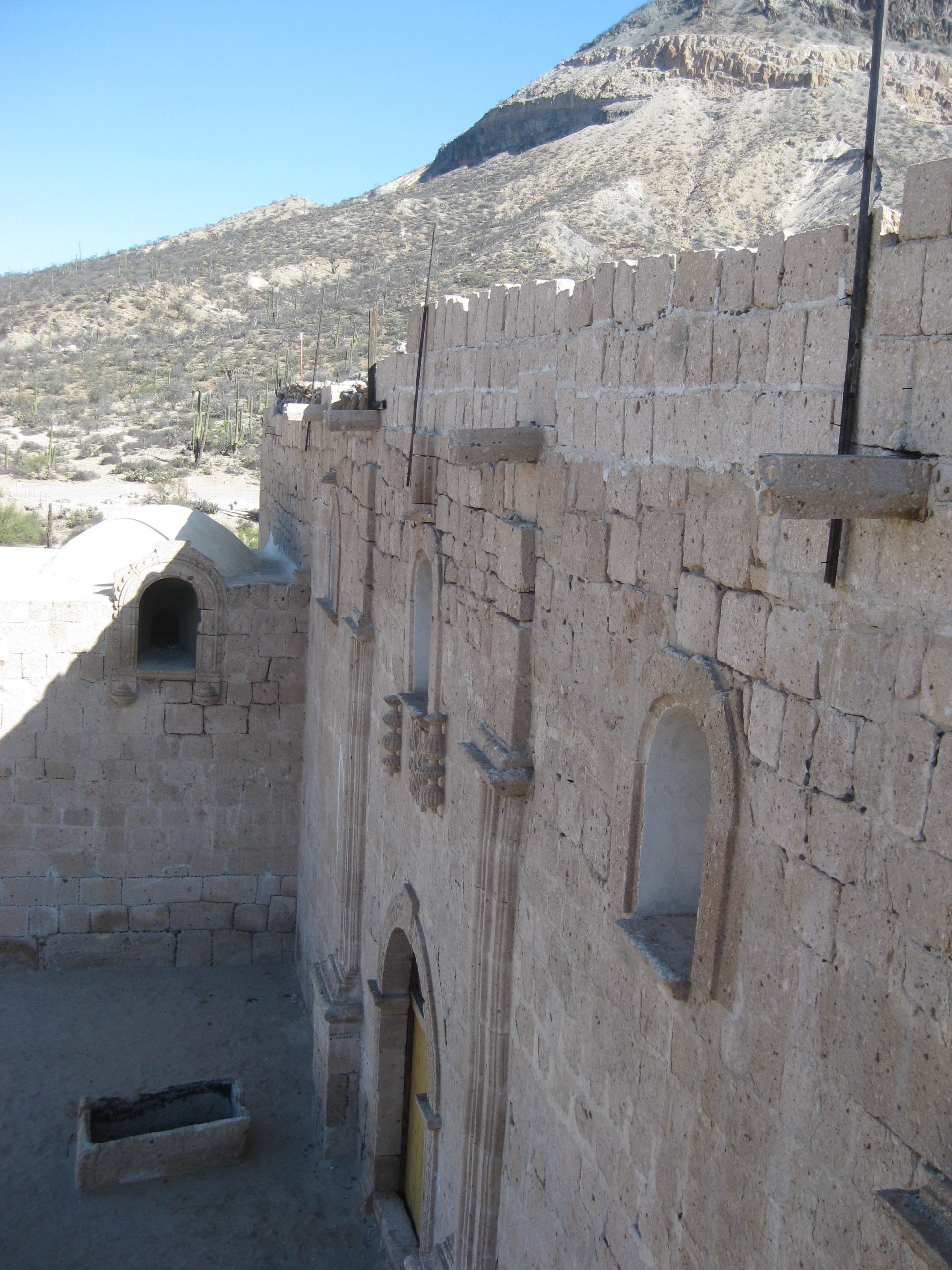 This mission (founded in 1762), is the furthest north stone mission church on the peninsula, replacing the adobe churches built by the Franciscans and Jesuits before them. The stone church construction lasted to 1801. The spiral stairway to the roof, never got a bell tower, as planned. The Indian die-off from a high of 1,700 (here and more living at various visitas) to just 400 neophytes, spelled an end to the vigorous dreams for a Spanish colony. By 1816, no more reports came from San Borja after the last resident priest left.
