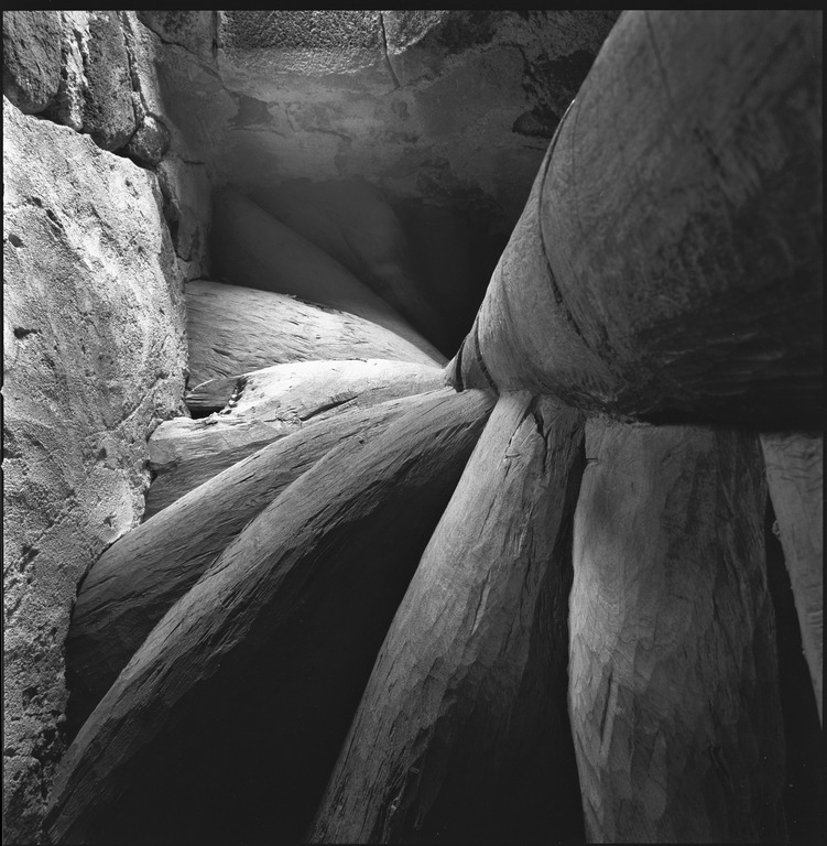 In 1976, I return to San Javier, now at 18 and just graduated high school. Here is my mother, who joined my girlfriend and I, getting a special trip up to the roof of the mission by the kind old caretaker. Photo looking north.