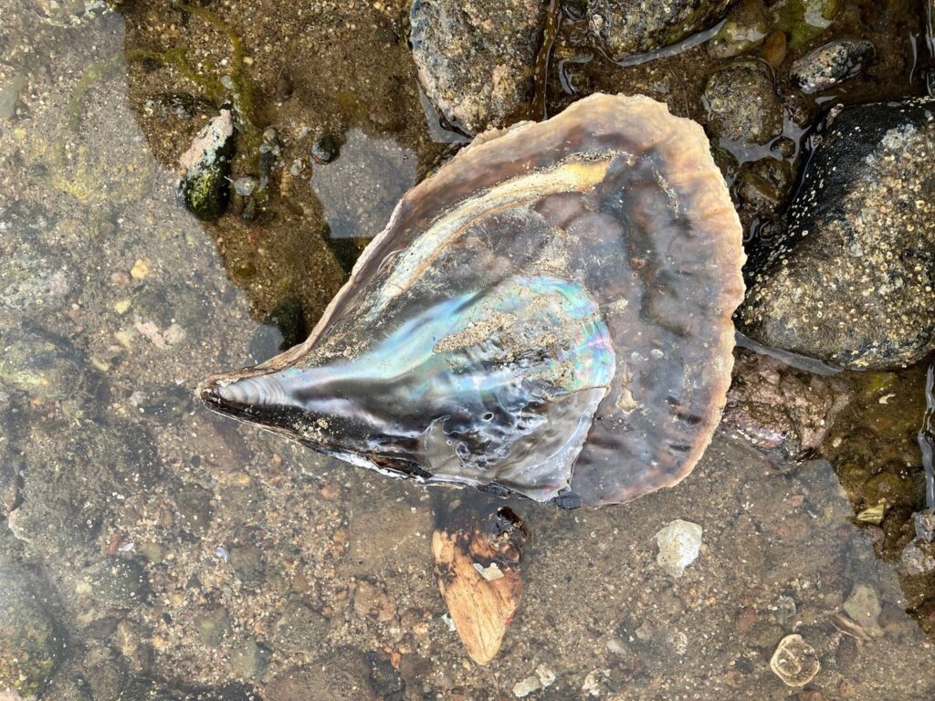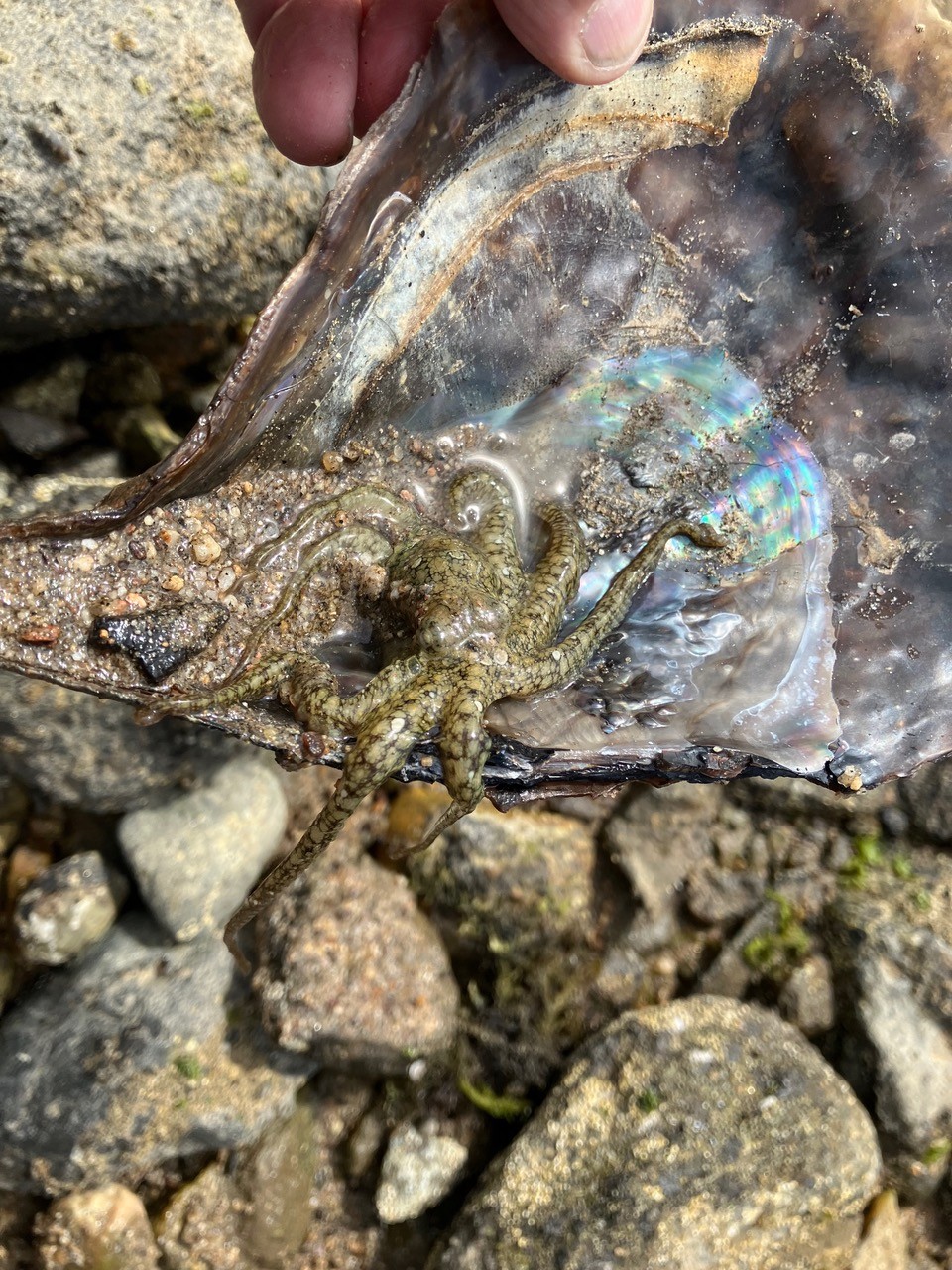 La hacha, the axe, a pen shellYoung octopus on an hacha shellLos Pelicanos
